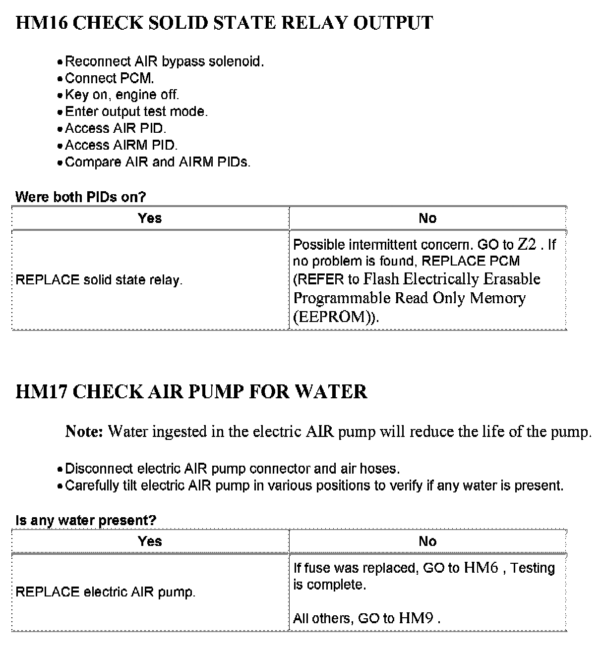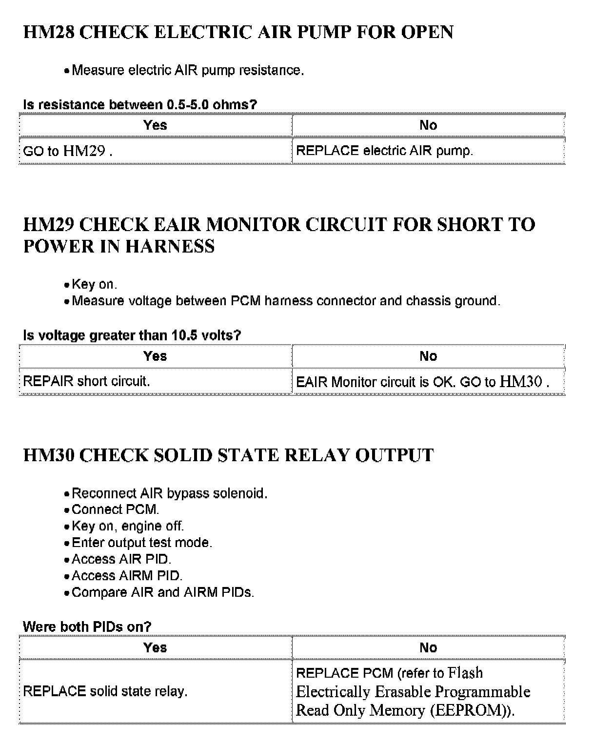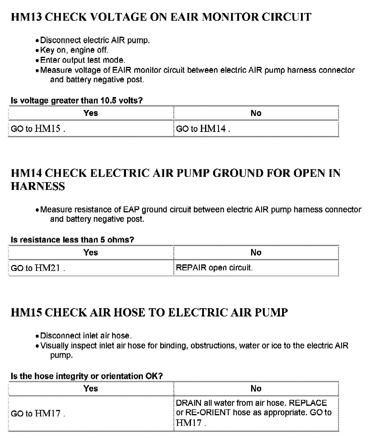 Tests HM: Secondary Air Injection (AIR) System