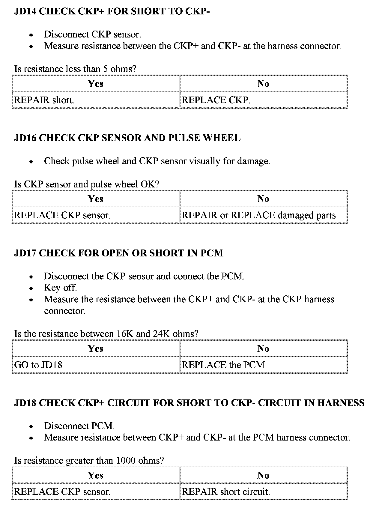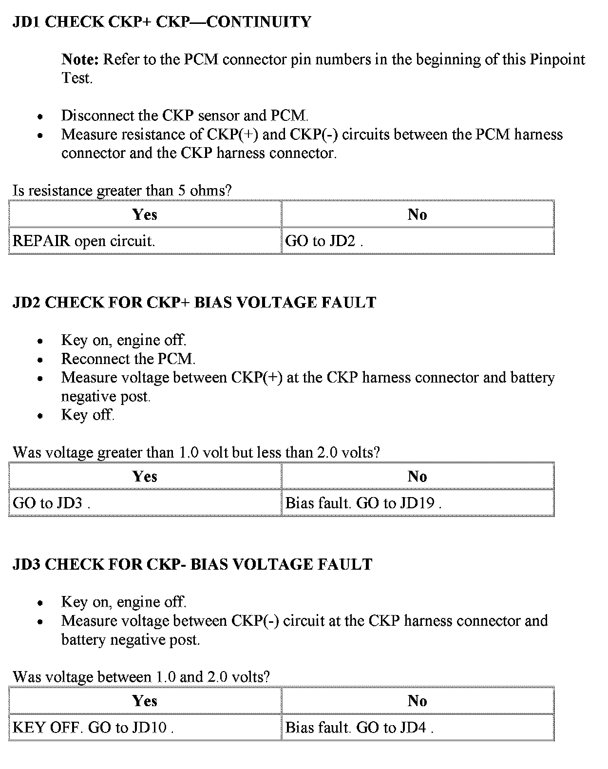 Tests JD: Crankshaft Position (CKP) Sensor