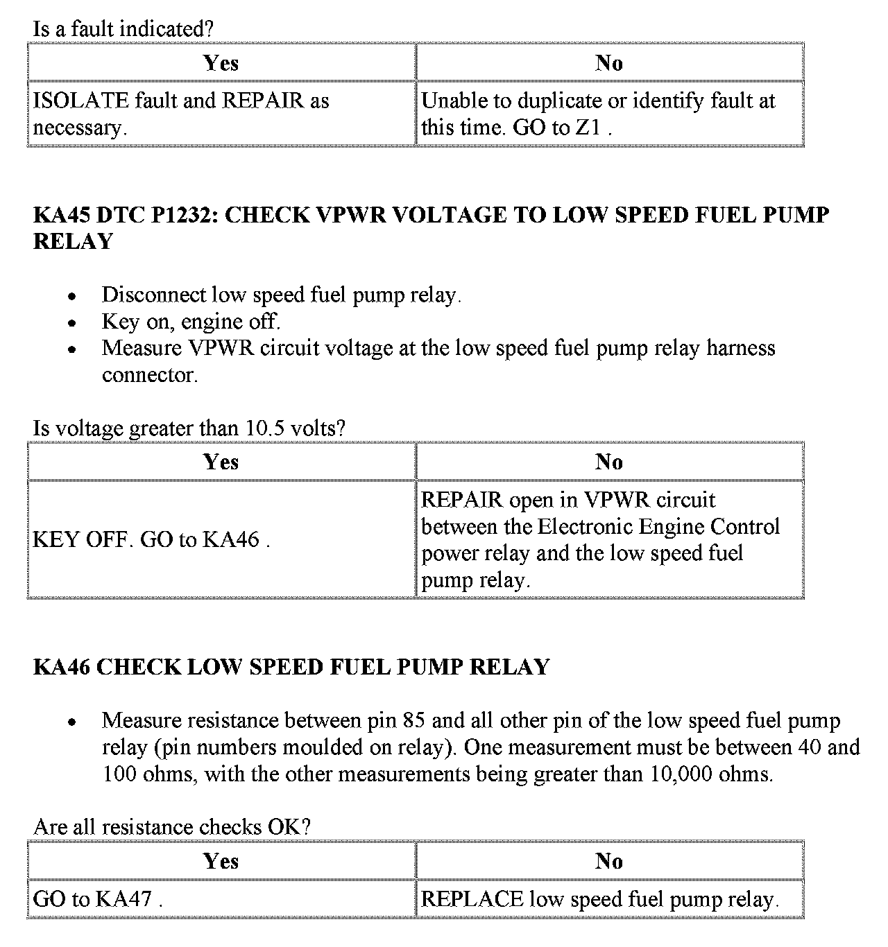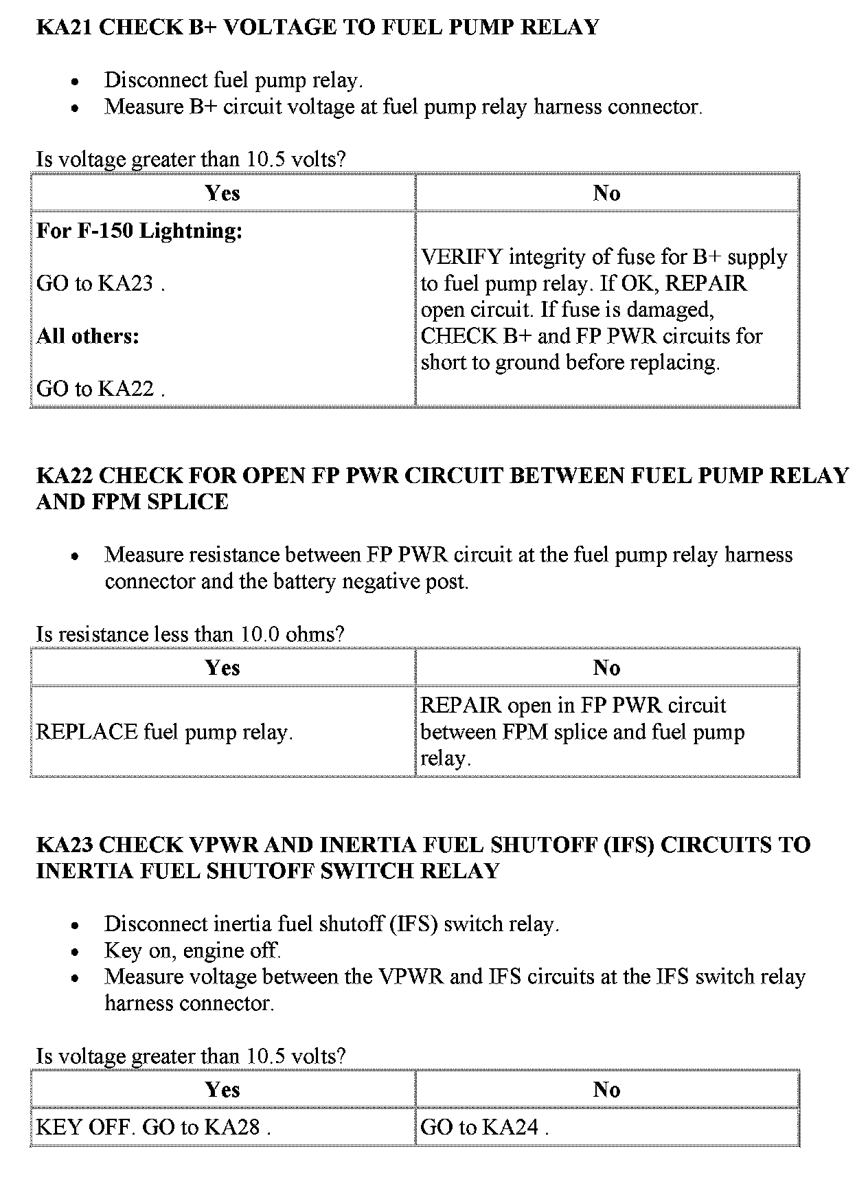 Tests KA: Fuel Pump Relay