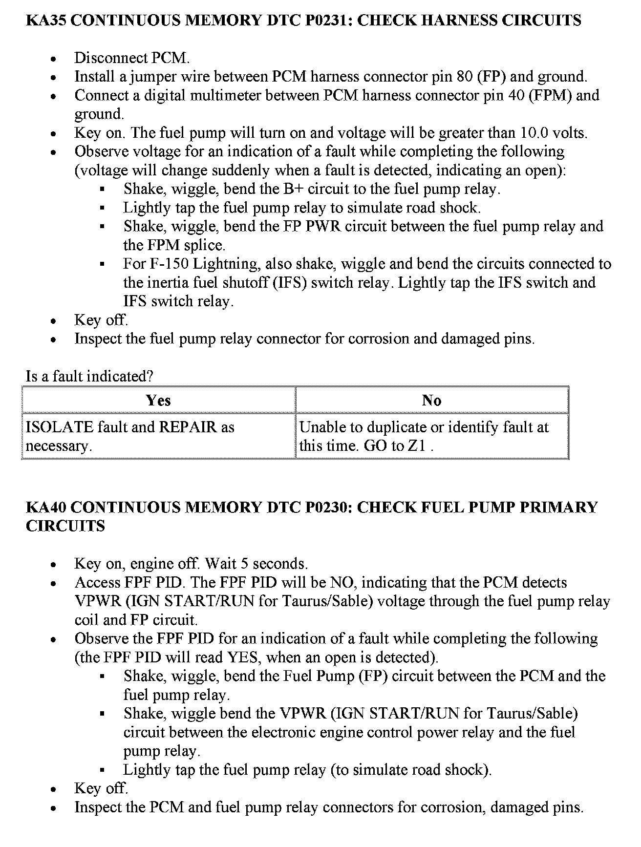 KA: Fuel Pump RelayPinpoint Test KA1 - KA3: