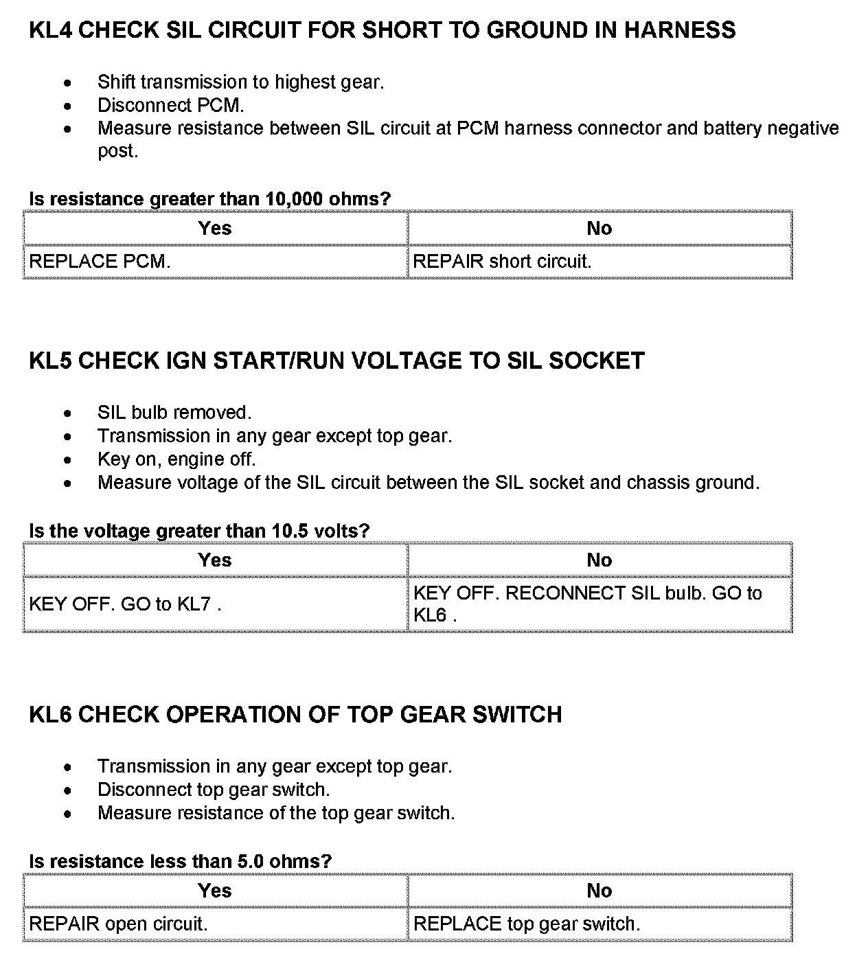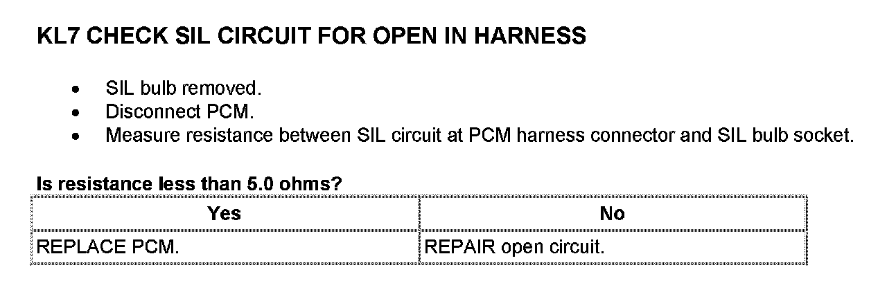 Tests KL: Shift Indicator Lamp (SIL)