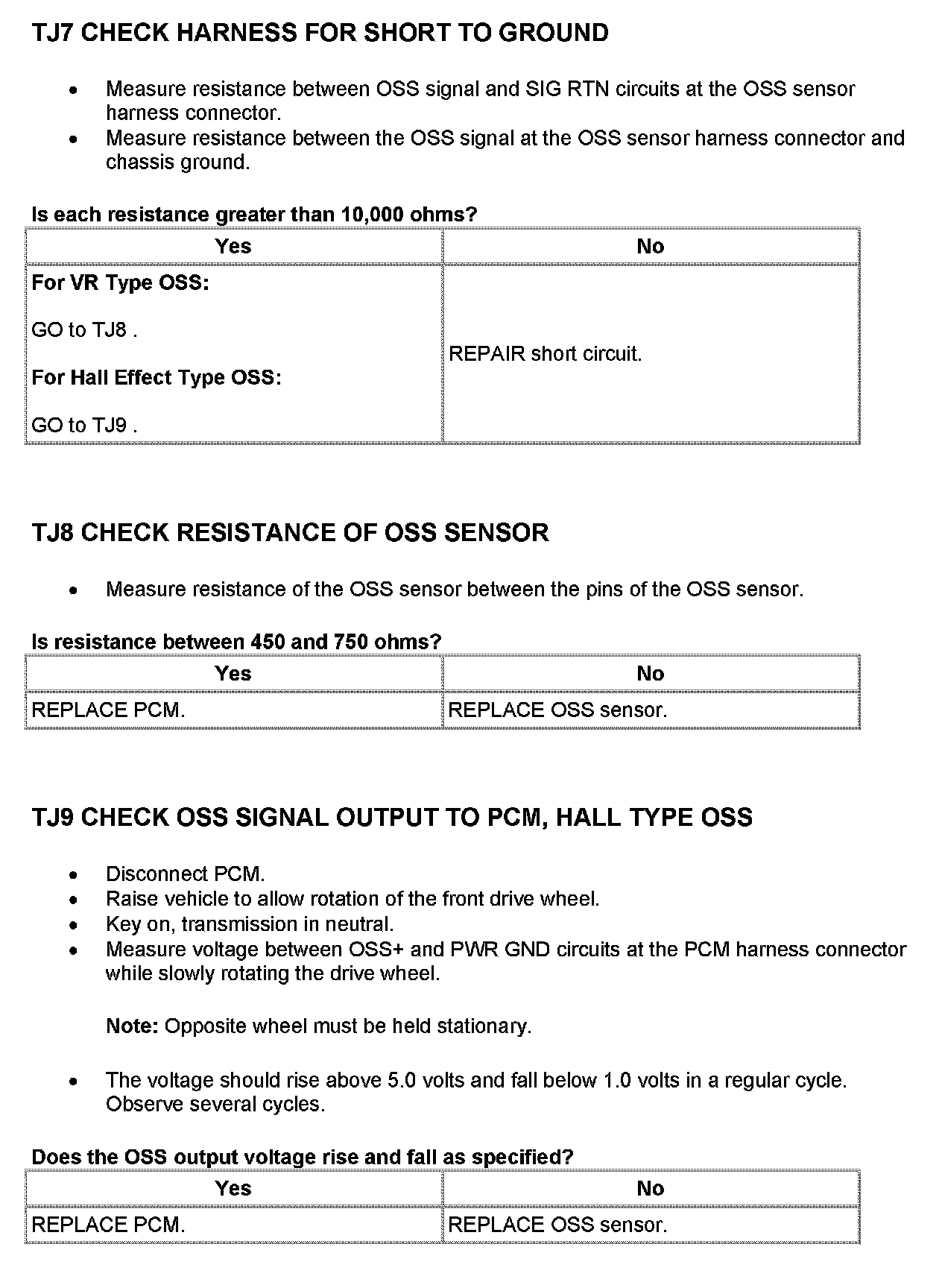 Tests TJ: Output Shaft Speed (OSS) Sensor