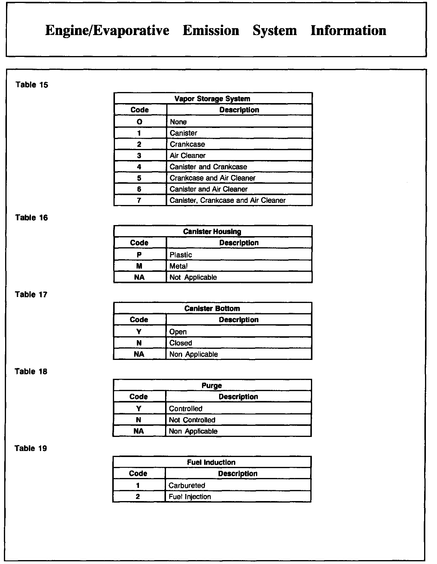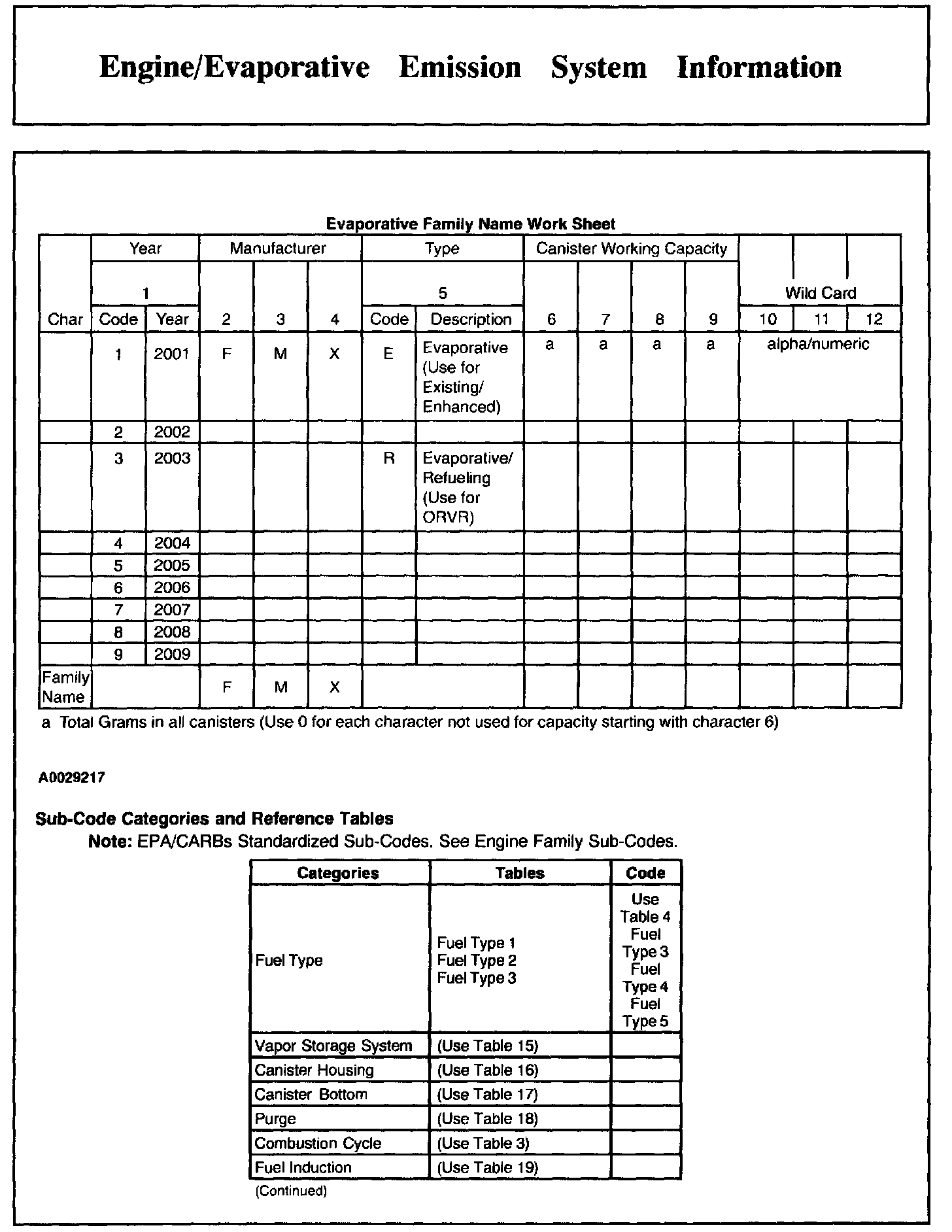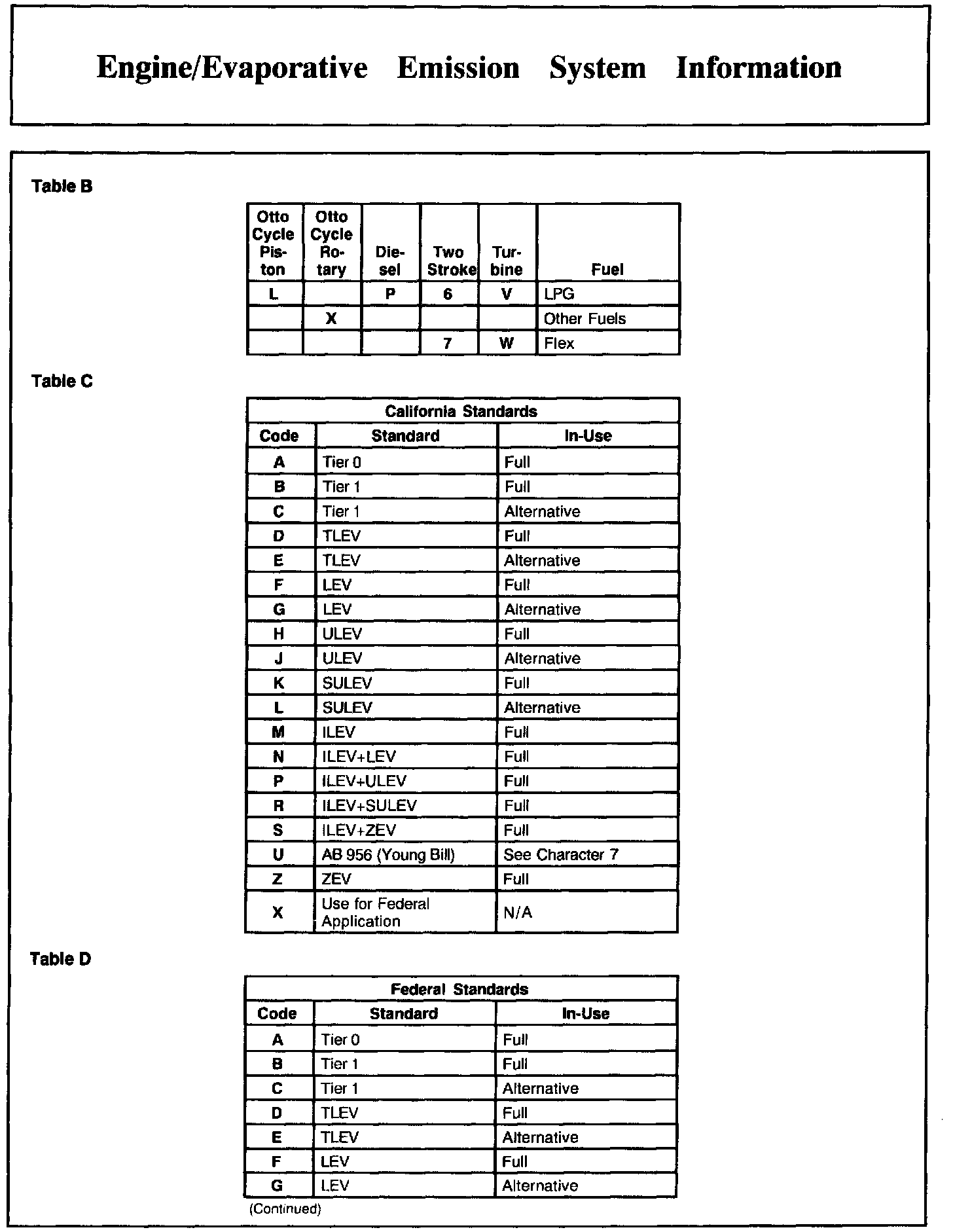 Manufacturers must use a standardized system for identifying their individual engine families. The system described below was developed by the Environmental Protection Agency (EPA) in 1991 to meet new regulatory requirements for 1994 and later model years.