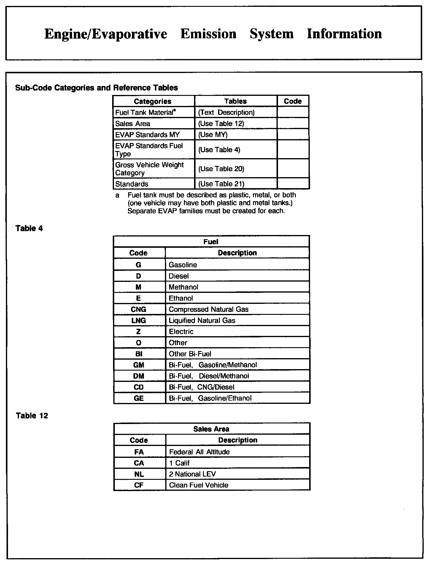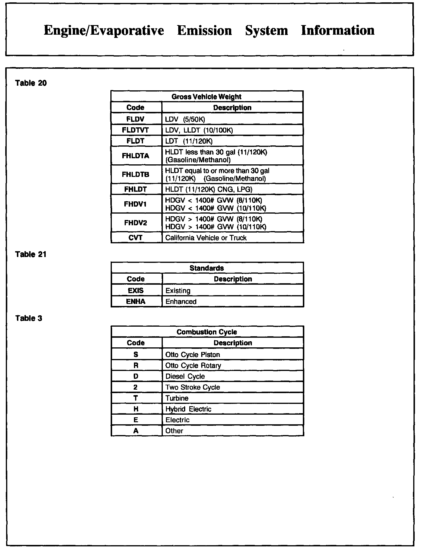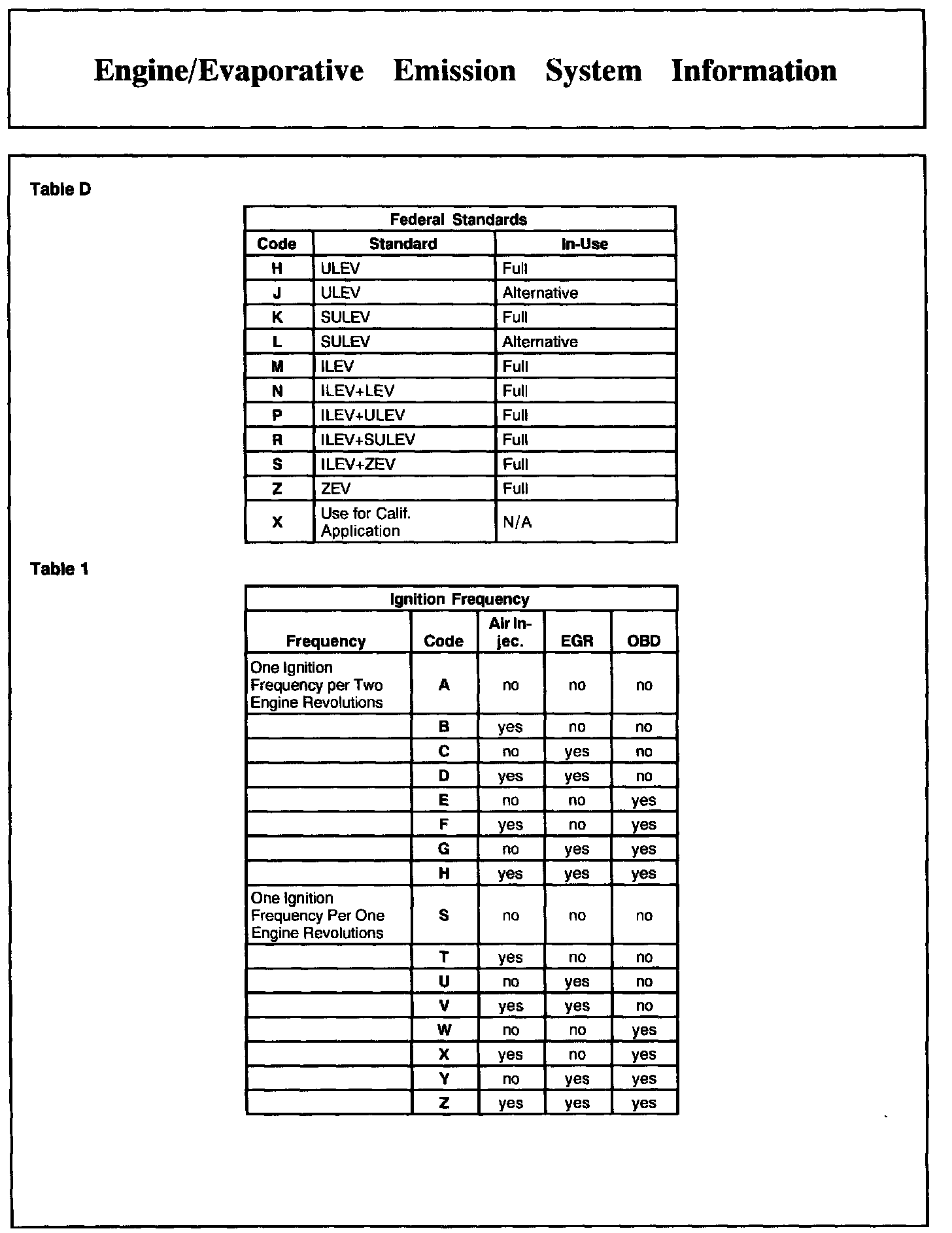 Engine/Evaporative Emission System Information