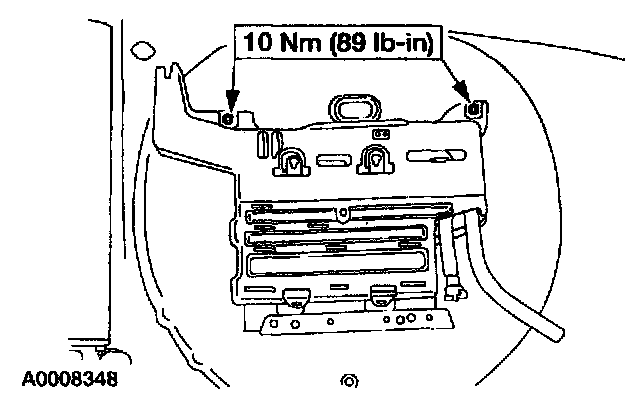 5. Remove the nuts and the evaporative emissions canister with bracket assembly from the vehicle.