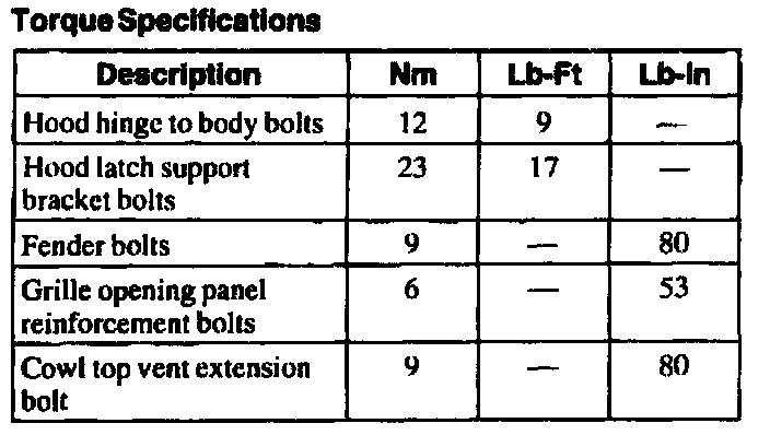 Torque Specifications: