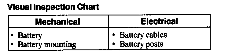 1. Verify the customer concern by operating the system.Visual Inspection Chart: