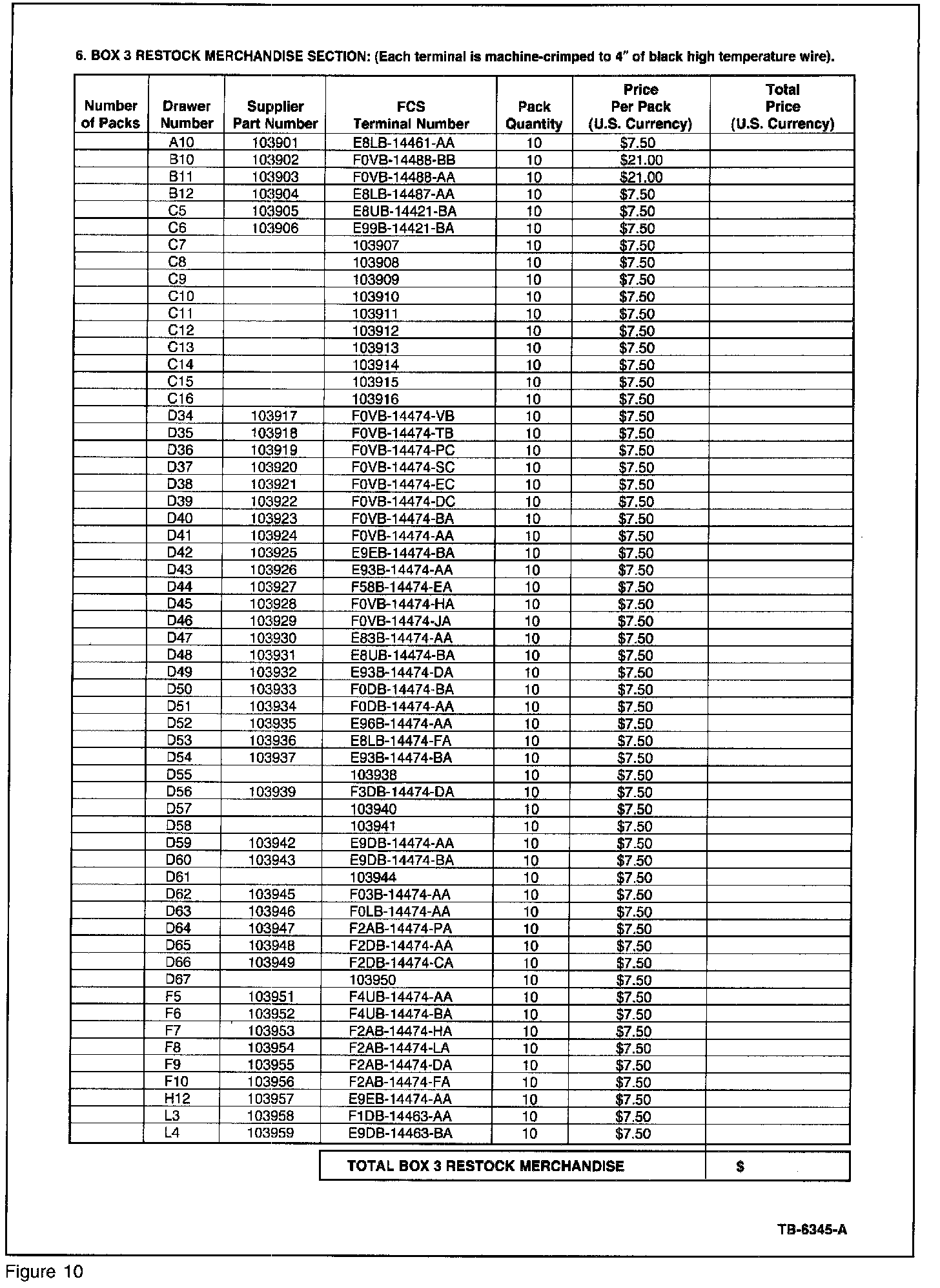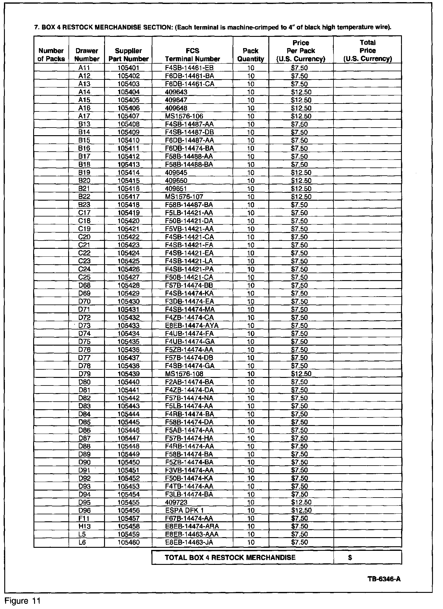 If wiring repairs are required, dealers can obtain a kit by using the included Order Form (Figures 6-11) shown. Pricing information is included for the complete boxes and restocking merchandise for the individual drawers.
