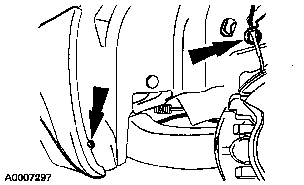 9. Install the LH front fender splash shield, screw, and pushpin.