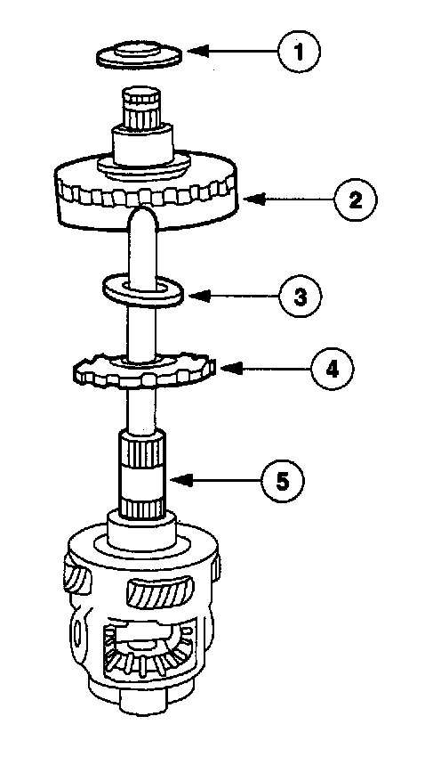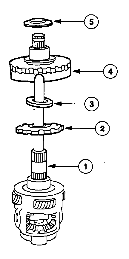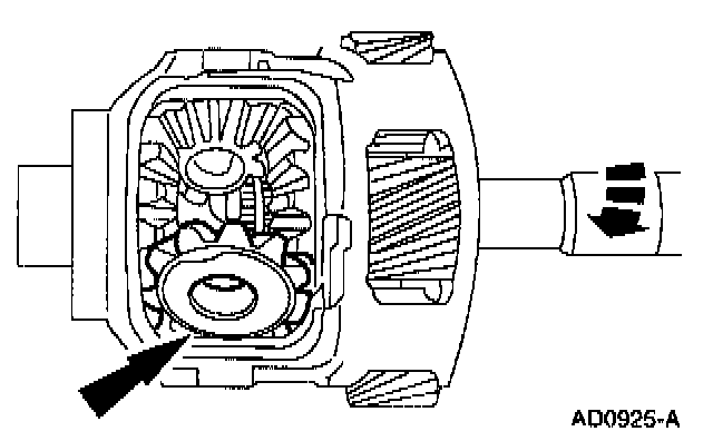 4. Rotate the output shaft and remove the differential pinion gear, and the differential pinion thrust washers.
