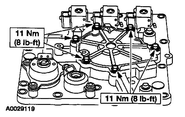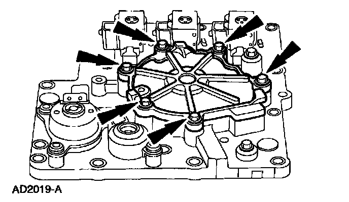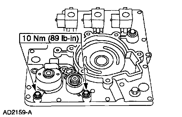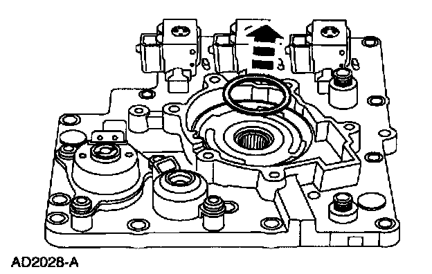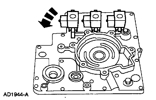 Install new O-rings and install the shift solenoids by pressing down and rotating them until they lock in place.