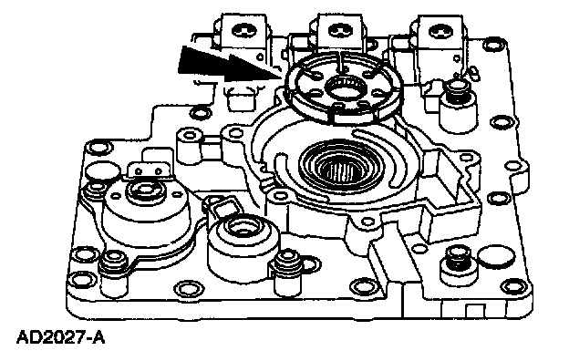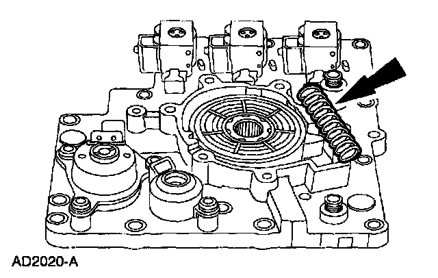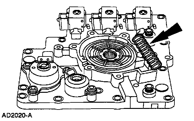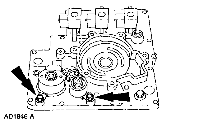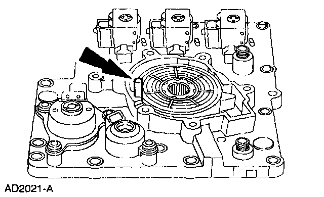 17. NOTE: The shift solenoids are interchangeable. Take note of the shift solenoid connector orientation.