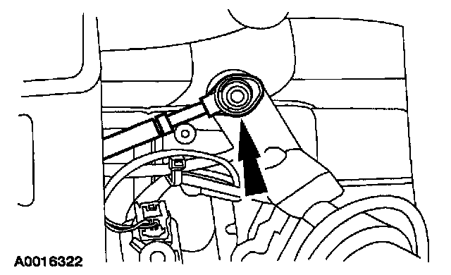 7. Lifting up on the locking tab while pulling up on the shift cable, remove the shift cable from the transmission shift cable bracket.