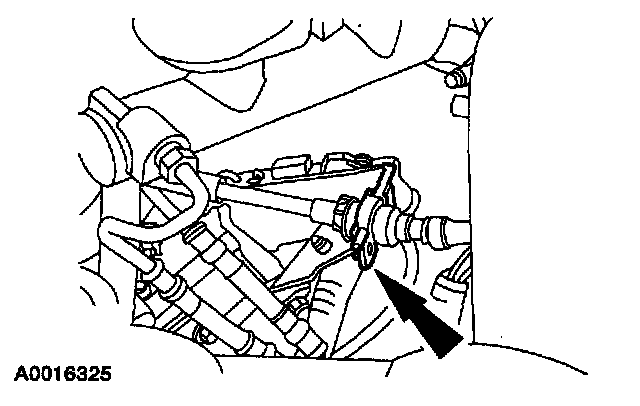 3. Remove the shift cable from the retaining bracket by carefully lifting up on the locking tab while pulling up on the shift actuator cable fitting.