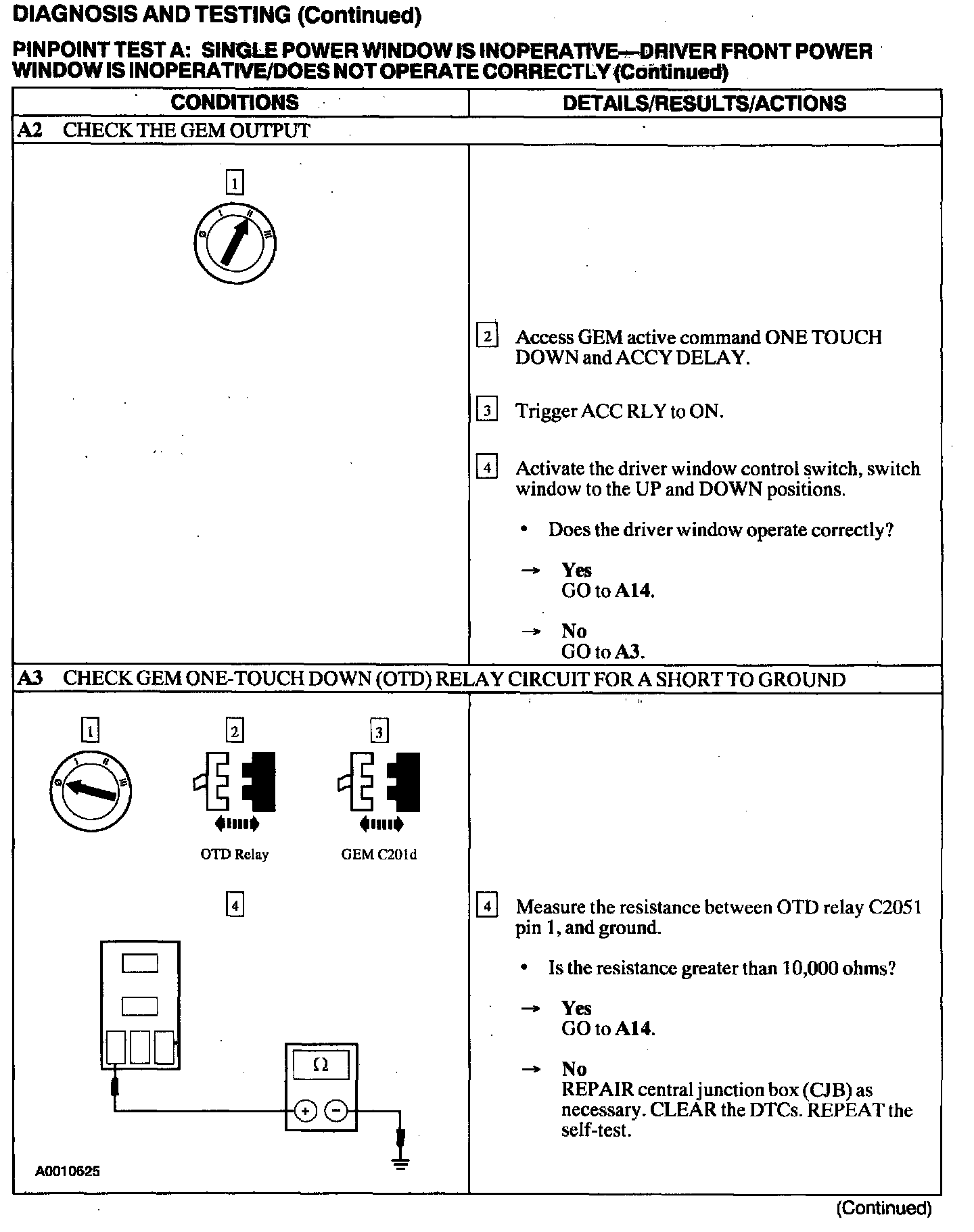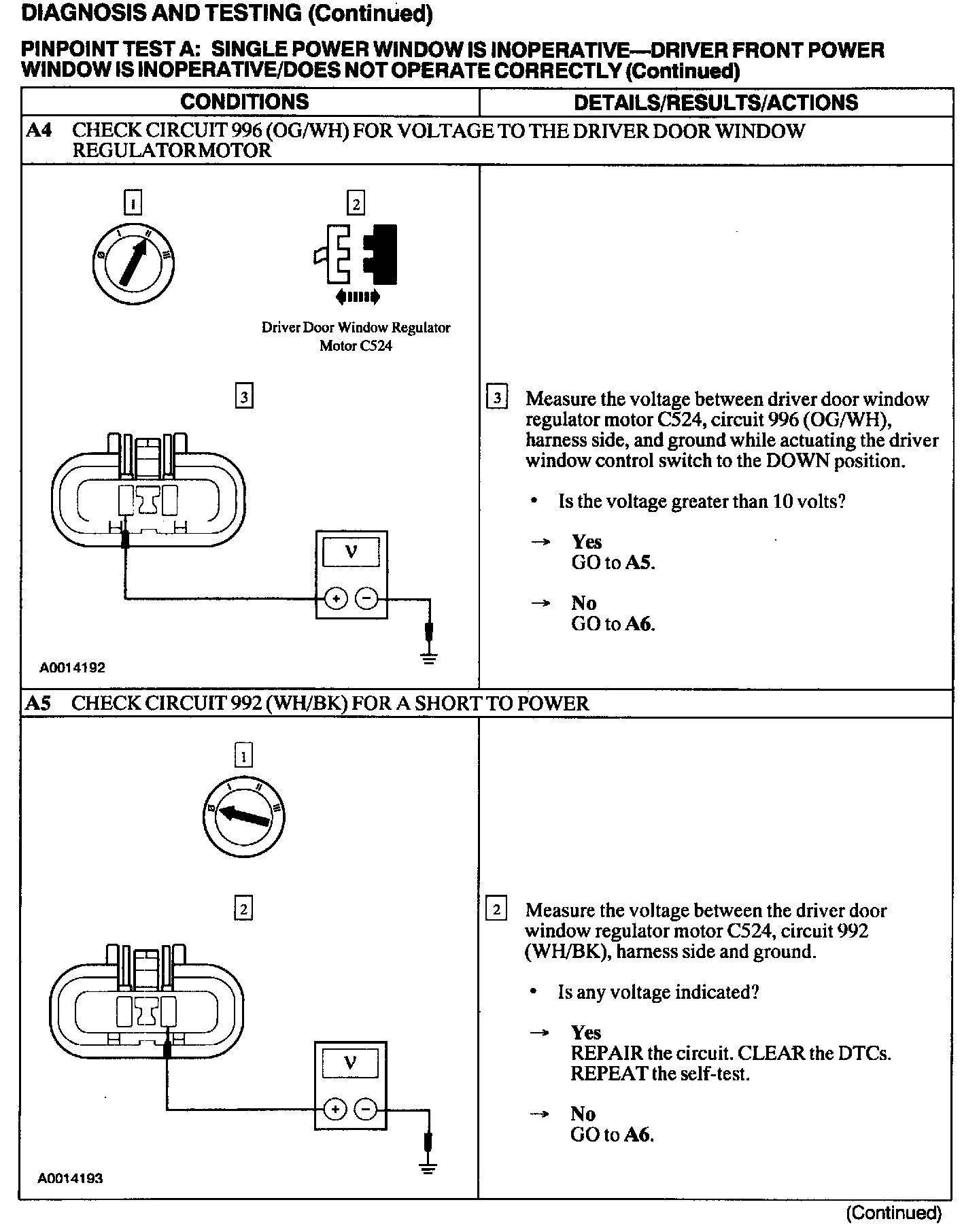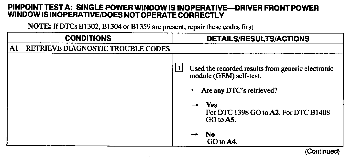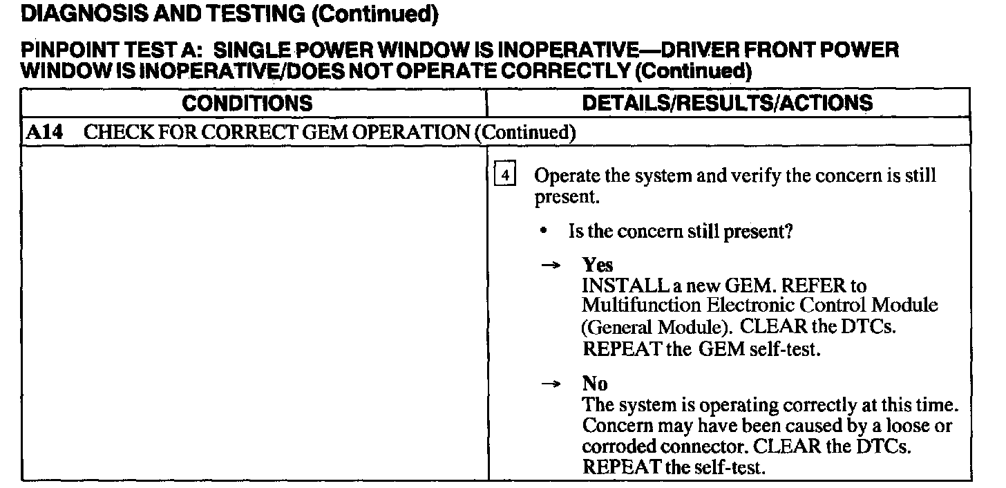 Test A: Single Power Window Is Inoperative