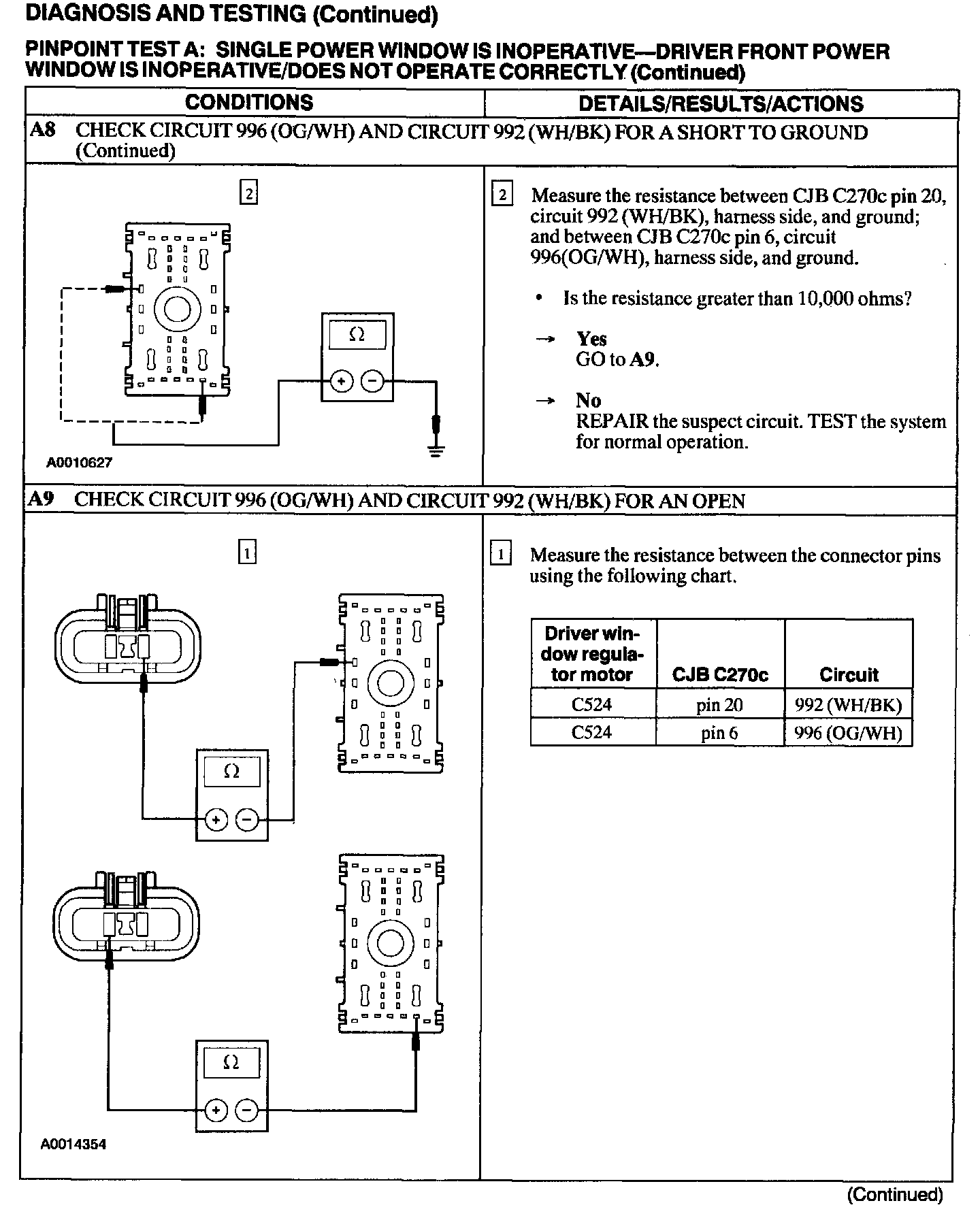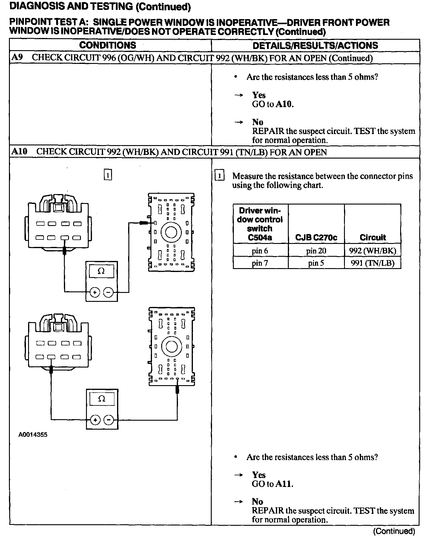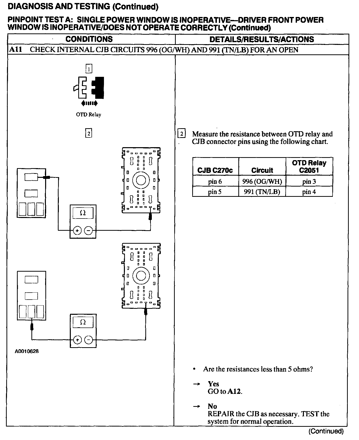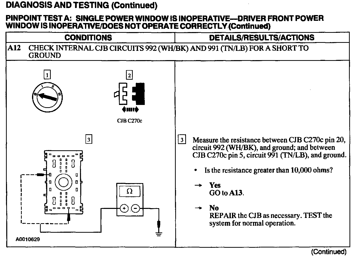 Test A: Single Power Window Is Inoperative