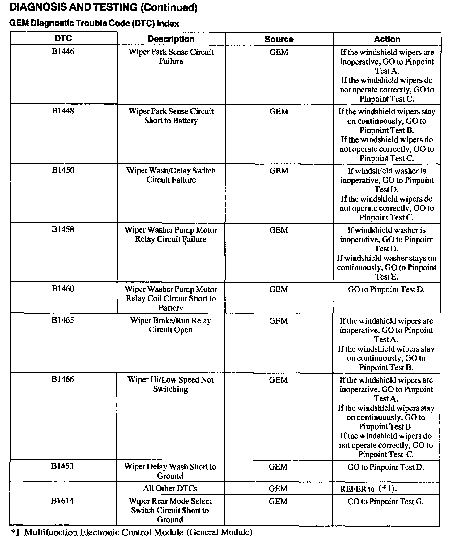 For a complete list of multifunction module DTCs, refer to Multifunction Electronic Control Module (General Module).