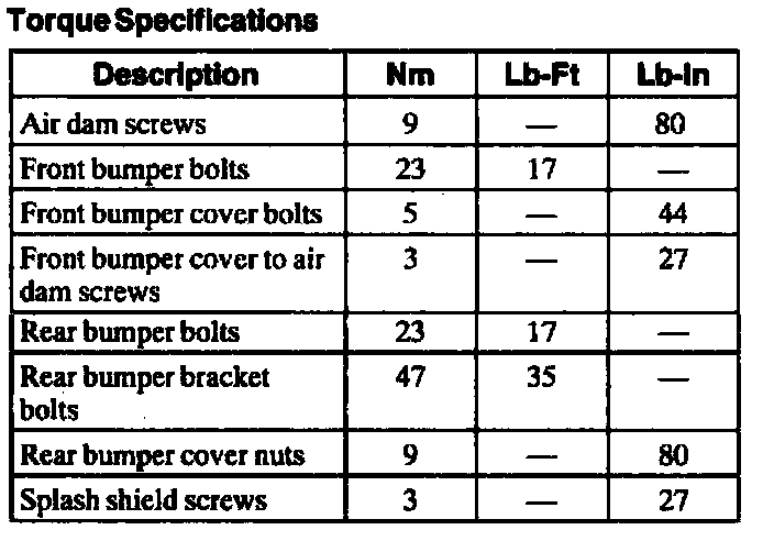 Torque Specifications: