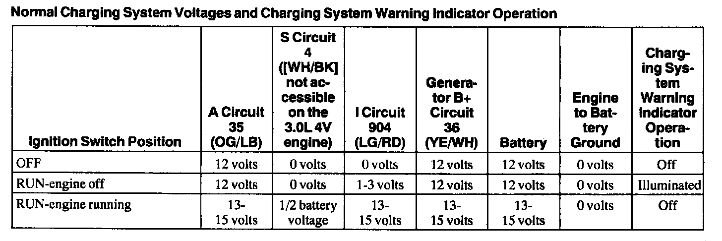 Normal Charging System Voltages and Charging System Warning Indicator Operation: