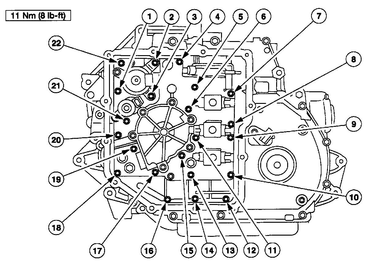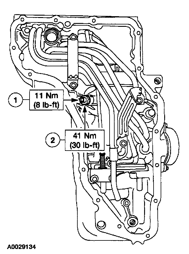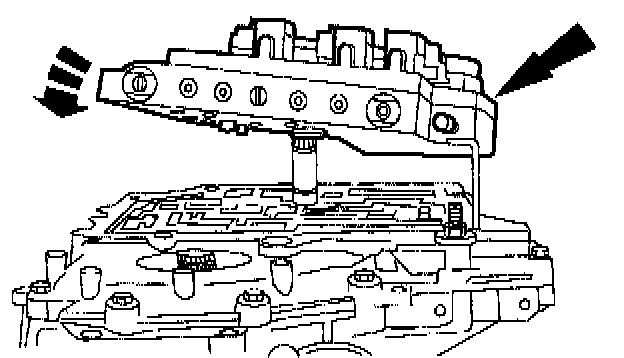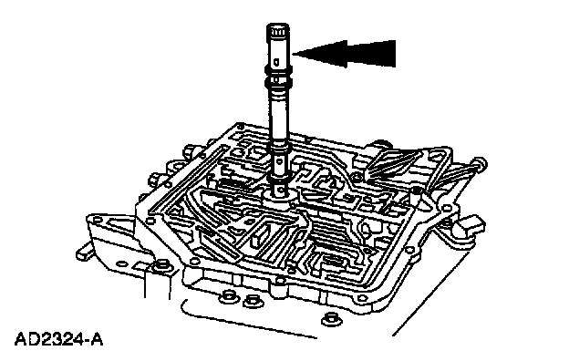 NOTE: When applying regulated 276 kPa (40 psi) air pressure to the appropriate passage, a dull thud should be heard when the clutch or band applies. There should be no hissing sound when the clutch or band applies.