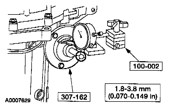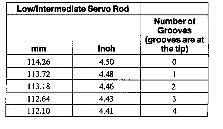 Back off the center screw until the piston movement stops and read the dial indicator. The reading should be within specification. If the reading does not match the specification, refer to the low/intermediate specification and determine which rod to use.