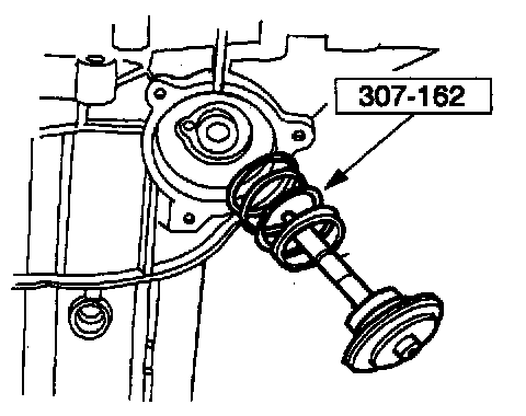 54. CAUTION: The test spring from the overdrive servo rod tool is plain in color and has a shorter free height than the operational spring. Extreme care must be used not to assemble the transaxle using the test spring.