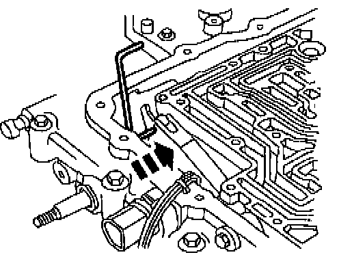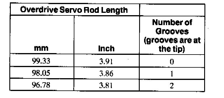 58. Back off the center screw until the piston movement stops and read the dial indicator. The reading should be within specification. If the reading does not match the specification, refer to the overdrive specification and determine which overdrive servo rod to use.