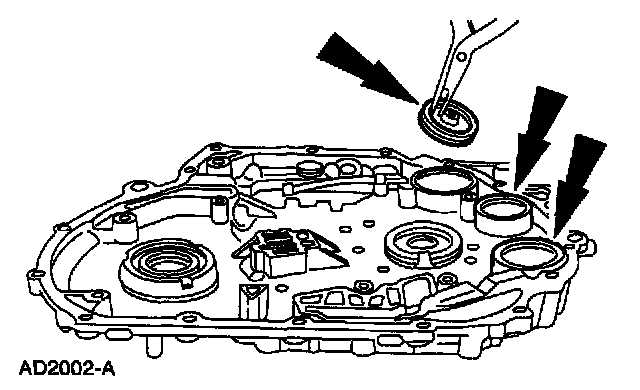 10. NOTE: The use of petroleum jelly will hold the accumulator piston shafts in place while assembling the chain cover.