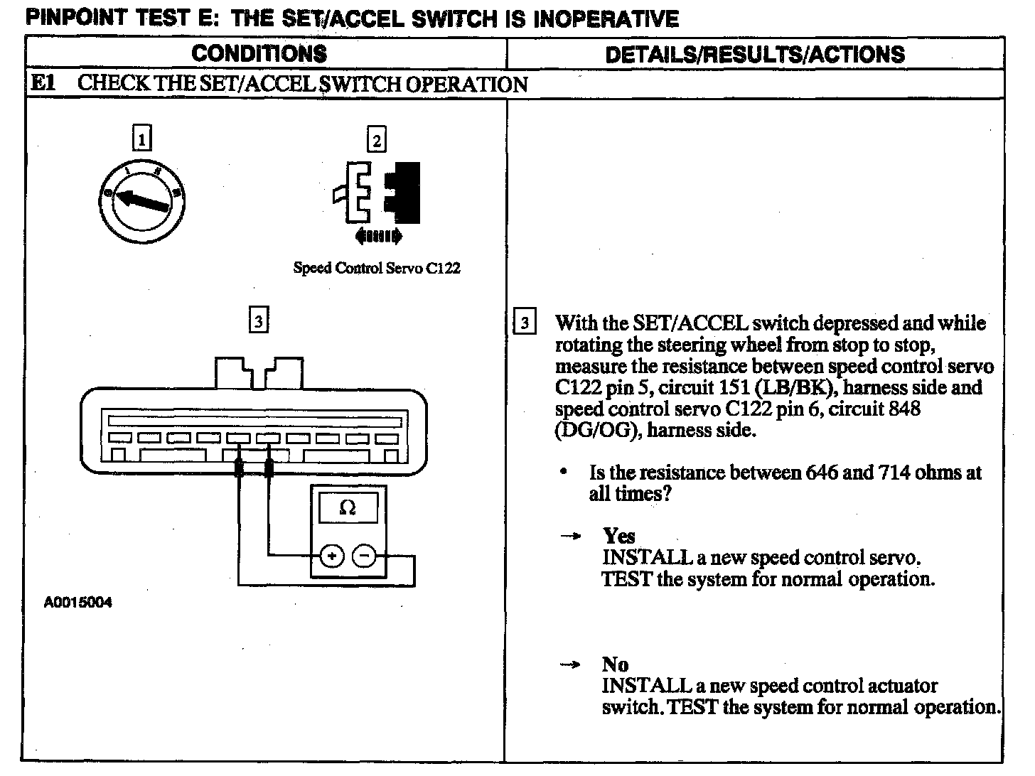 Test E: Set/Accel Switch Is Inoperative