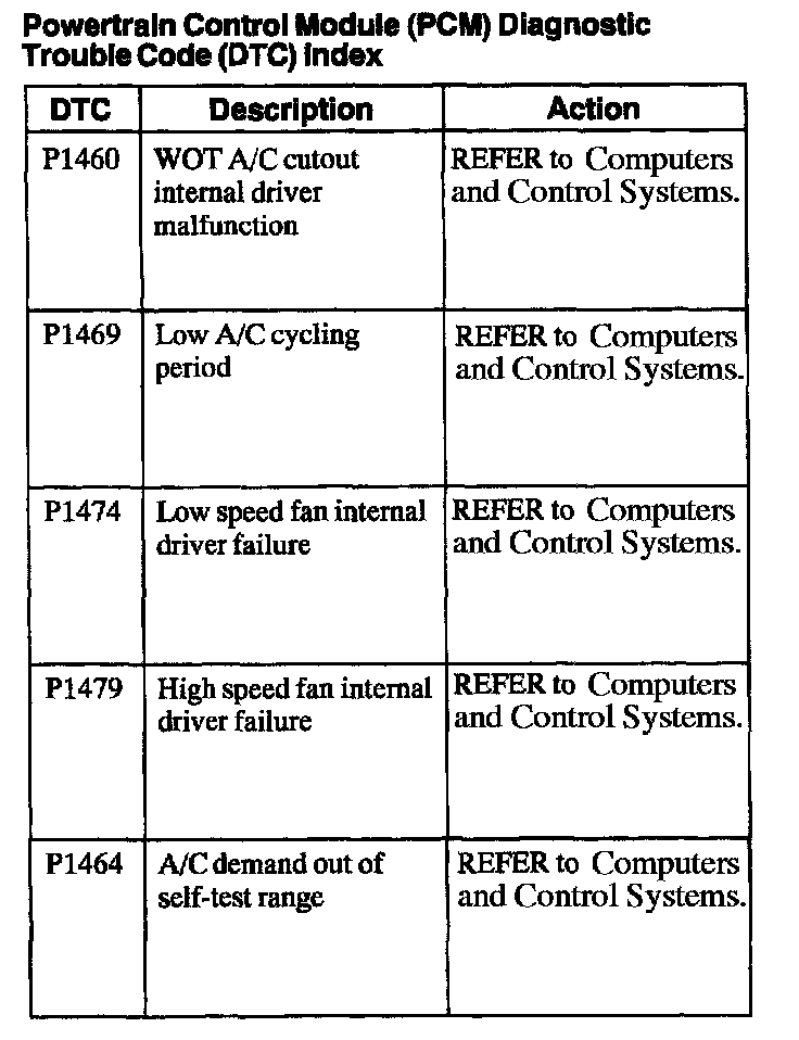 Powertrain Control Module Diagnostic Trouble Code (DTC) Index
