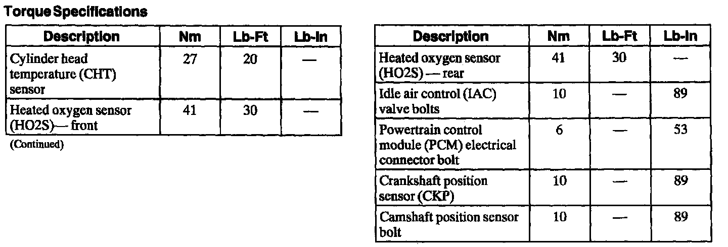 Torque Specifications: