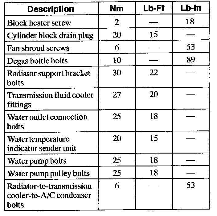 Torque Specifications