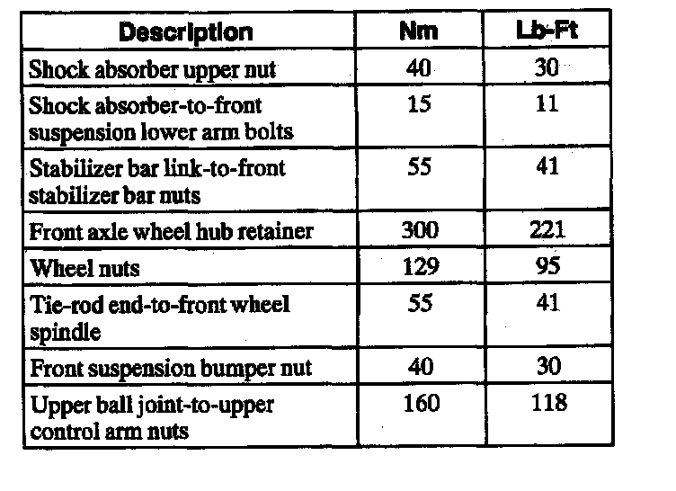 Torque Specifications