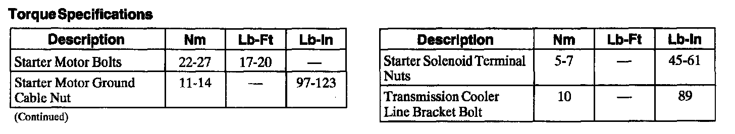 Starting System: Specifications