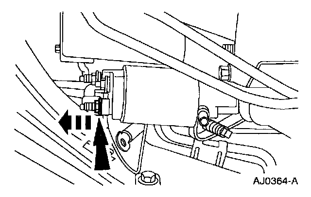 4. Remove the bolt and position the transmission cooler lines and bracket out of the way.