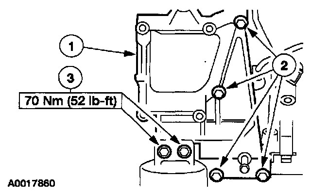 Position the cover and install the bolts in the sequence shown.