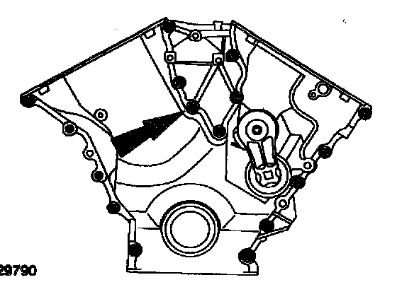 22. Remove the bolts, studs and the engine front cover.