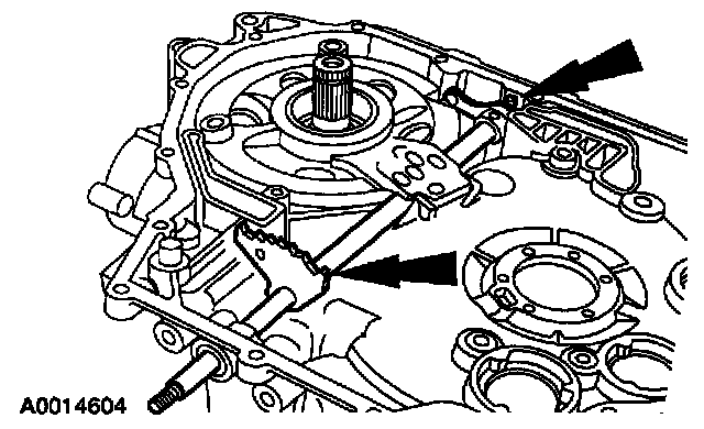 25. CAUTION: Do not remove the two bolts that hold the pump assembly and main control valve body together as the pump assembly may fall from the main control valve body and become damaged.