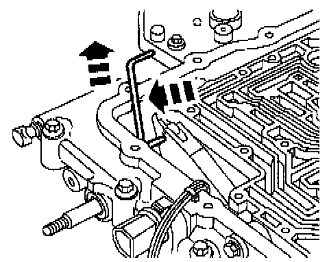 NOTE: The position of the manual valve detent lever is different than past models. The roll pin and shoulder point toward the driven sprocket support. Note the position of the lever during disassembly for correct assembly.