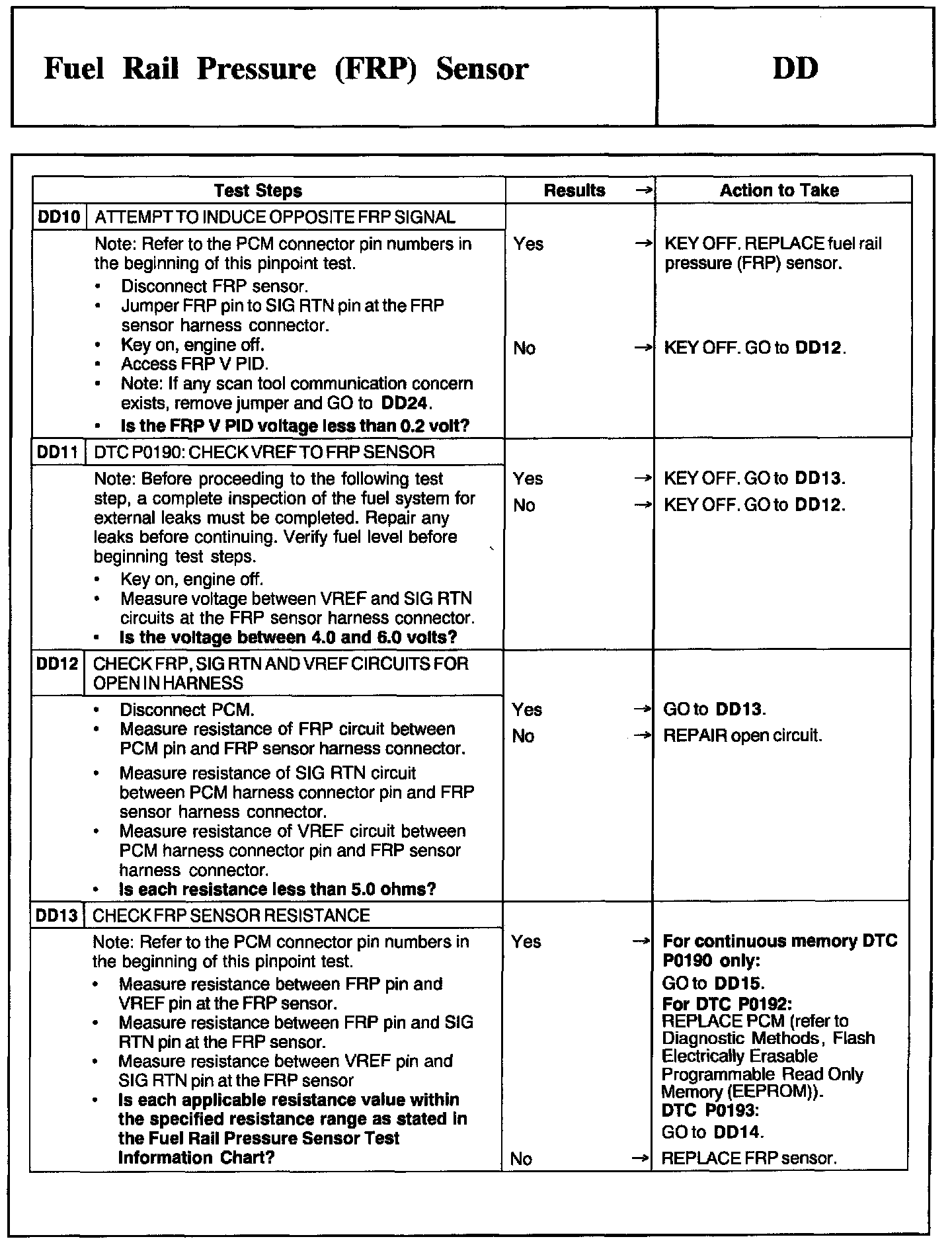 Tests DD: Fuel Rail Pressure (FRP) Sensor