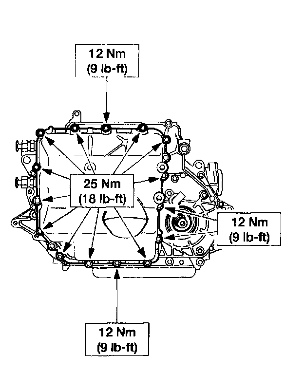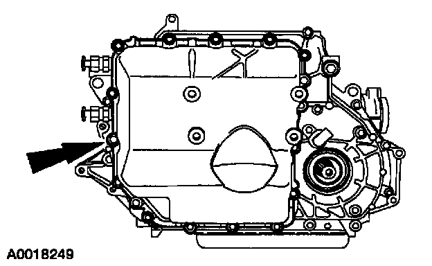 26. Position a drain pan under the transaxle side pan.