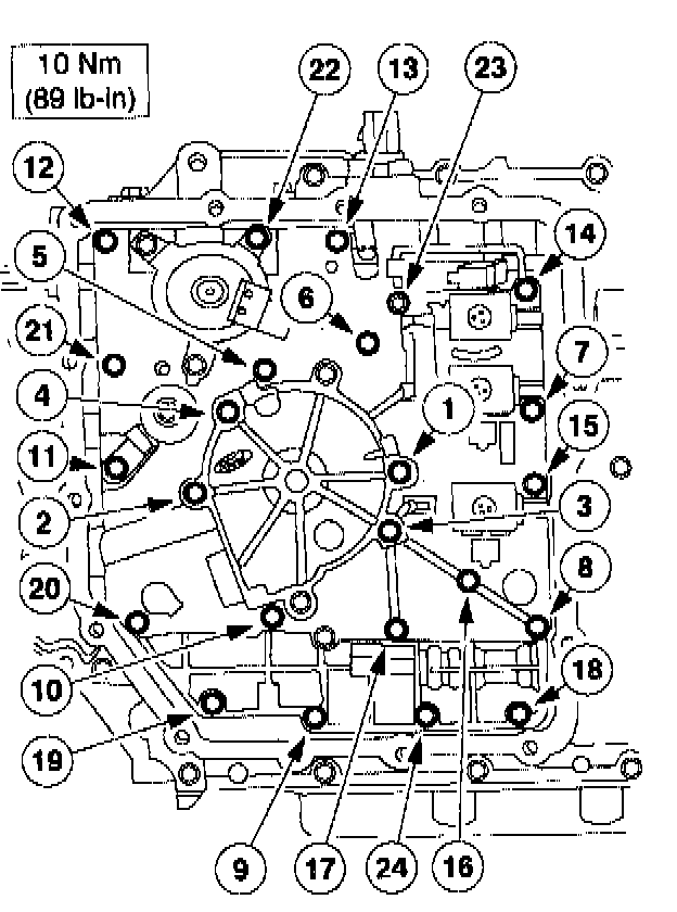 3. CAUTION: Do not use the bolts to draw pump assembly and near control valve body onto the chain cover case. Component damage may occur.