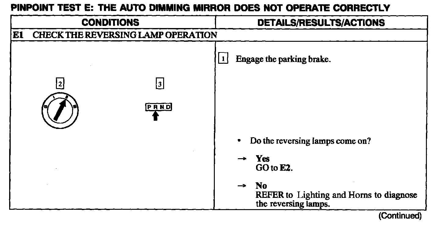 Test E: Auto Dimming Mirror Does Not Operate Correctly