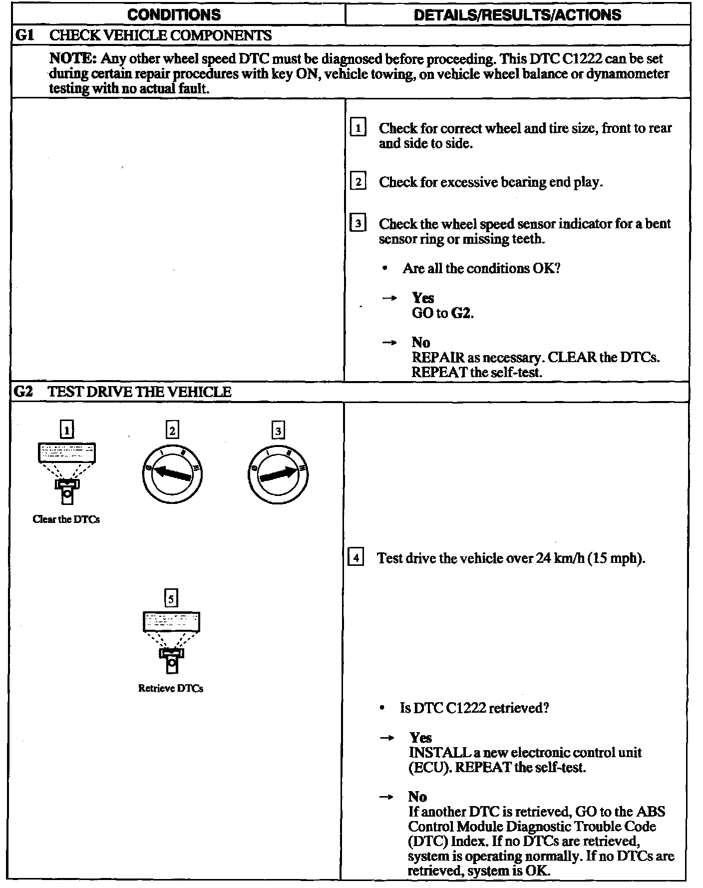 PINPOINT TEST G: DTC C1222 - WHEEL SPEED SIGNAL MISMATCH