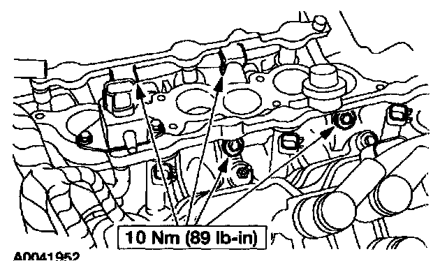 4. Install the intake manifold. Tighten the bolts in the sequence shown in two stages.