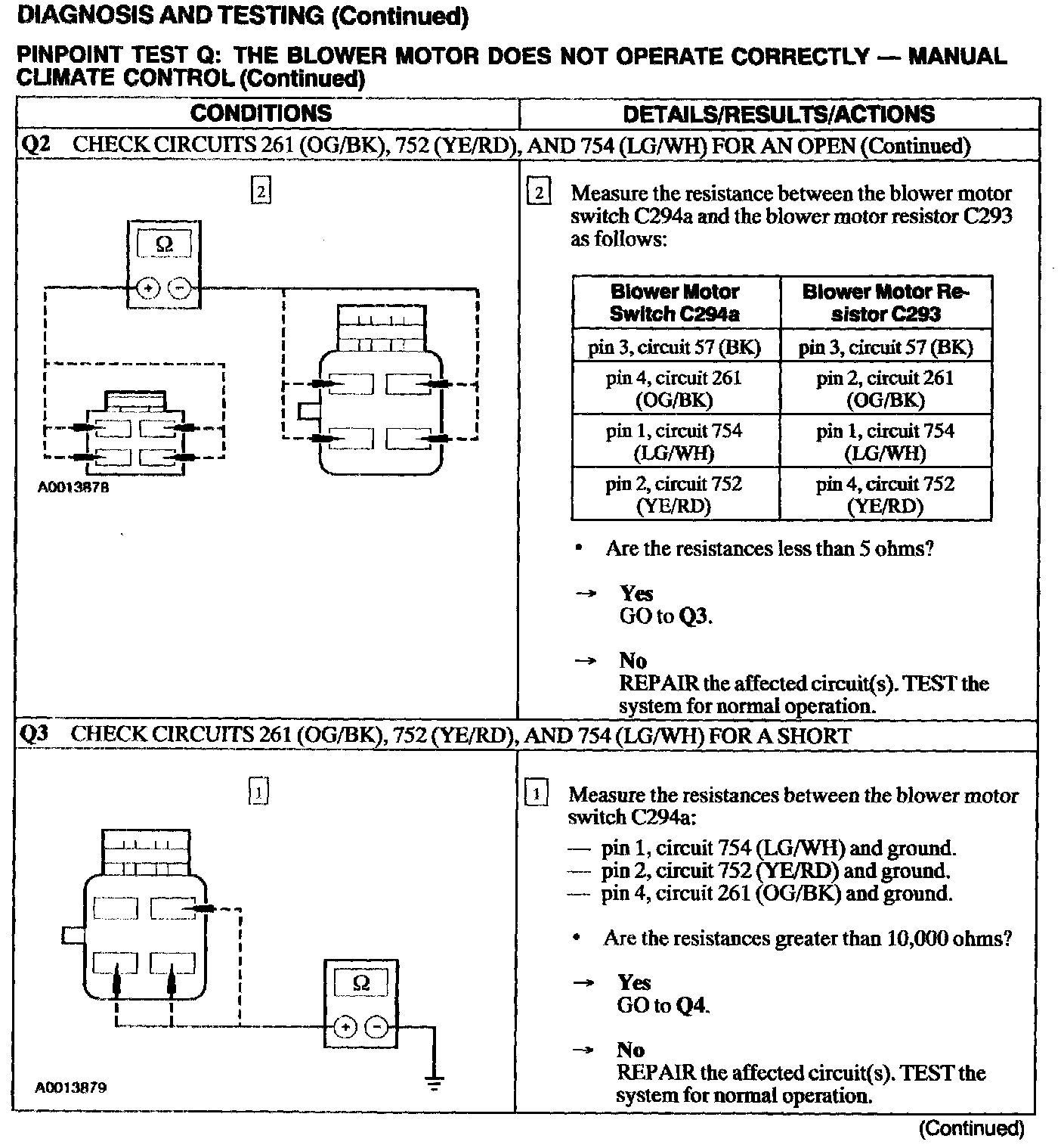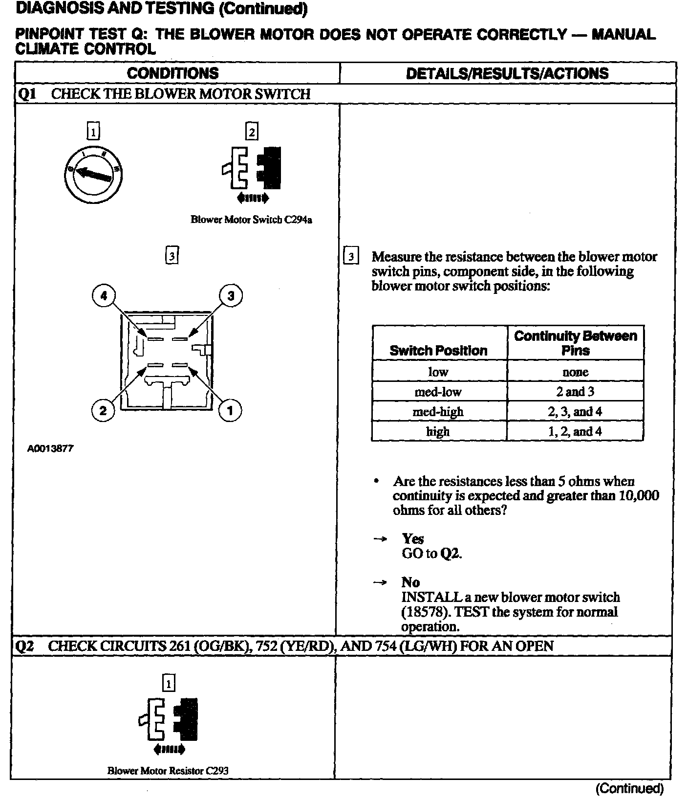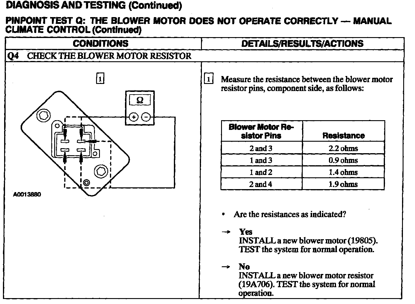 Test Q: Blower Motor Does Not Operate Correctly - Manual