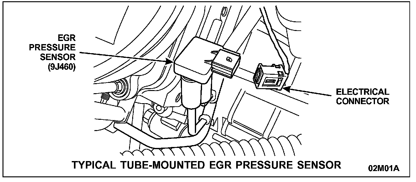 c) Install the new EGR pressure sensor onto the EGR tube and connect the electrical connector. Note: Refer to Section 303-08 of the appropriate workshop manual if additional information is required.
