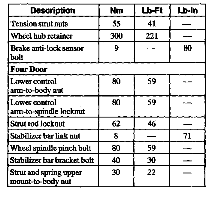 Torque Specifications