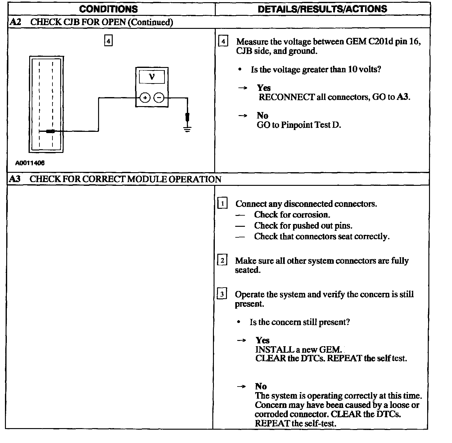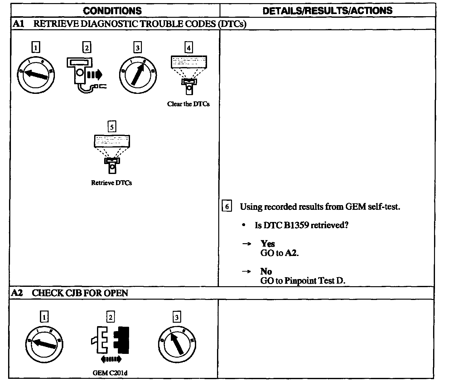 NOTE: The DTC will appear if the connection between the GEM and CJB is open on this pin. This pin open will cause the following symptoms: no power window operation, no windshield wiper operation and no heated backlite operation.