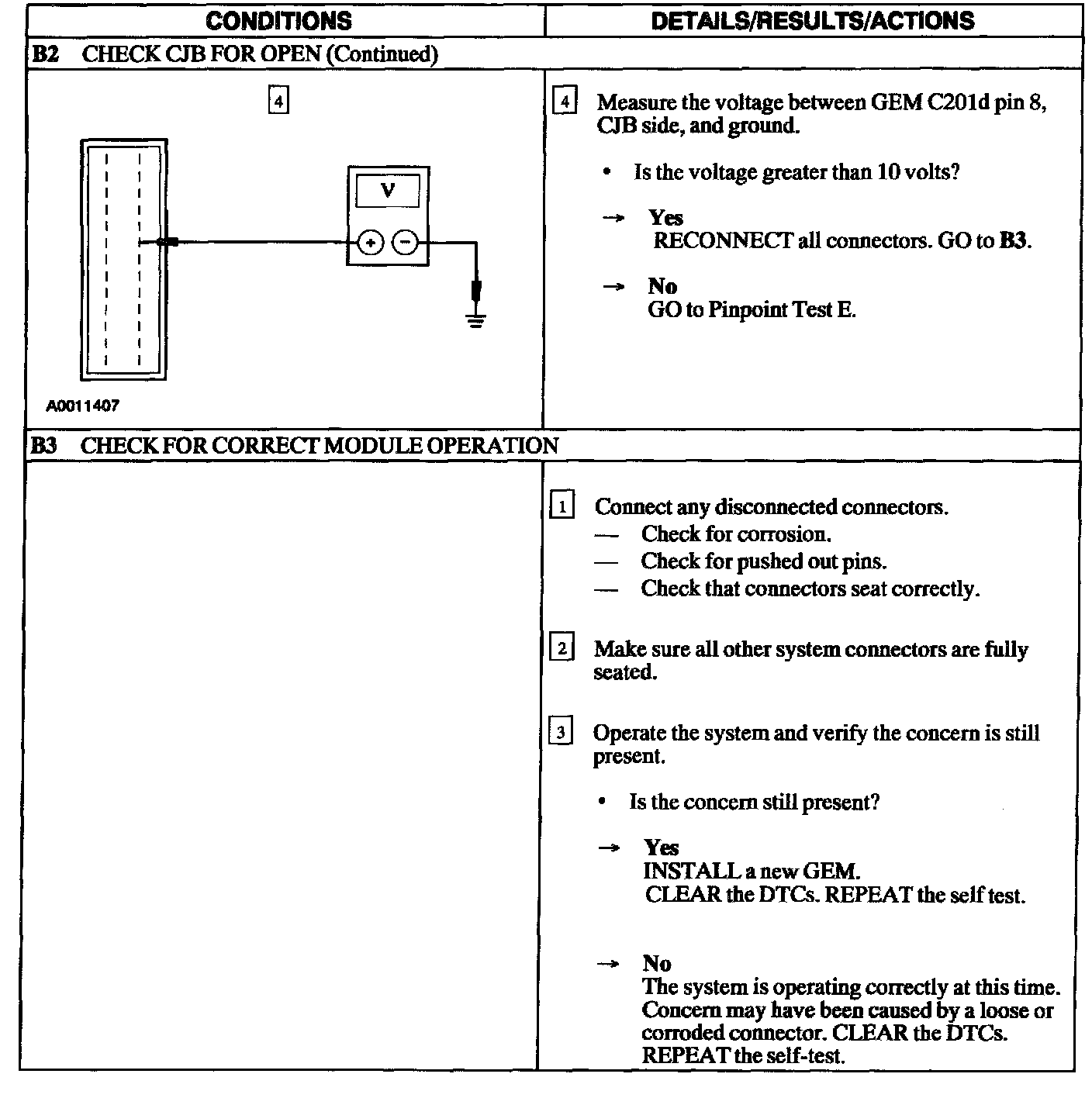 NOTE: The DTC will appear if the connection between the GEM and CJB is open on this pin. This pin open will cause the following symptoms: no auto headlamps, no DRL and no heated backlite operation.